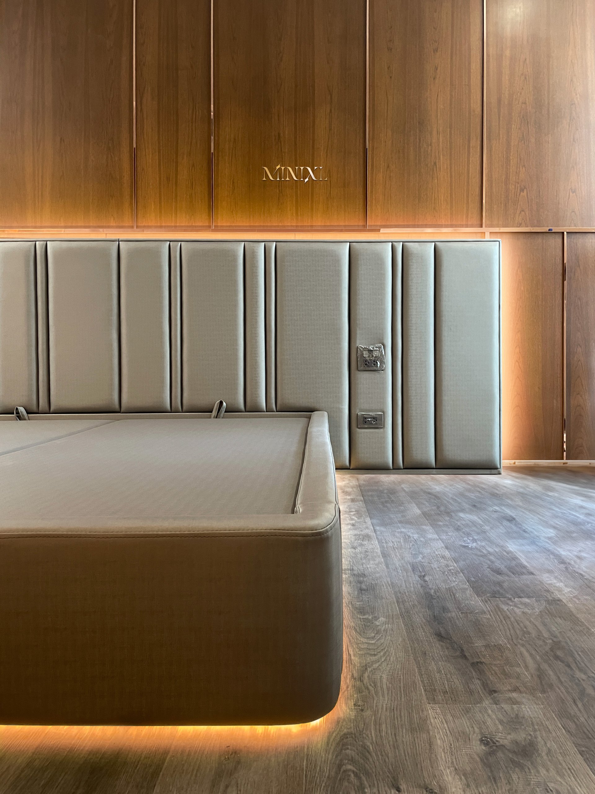- หัวเตียงบุร่องแนวตั้ง เสริมมิติให้ห้องดูหรูหราและเป็นระเบียบ