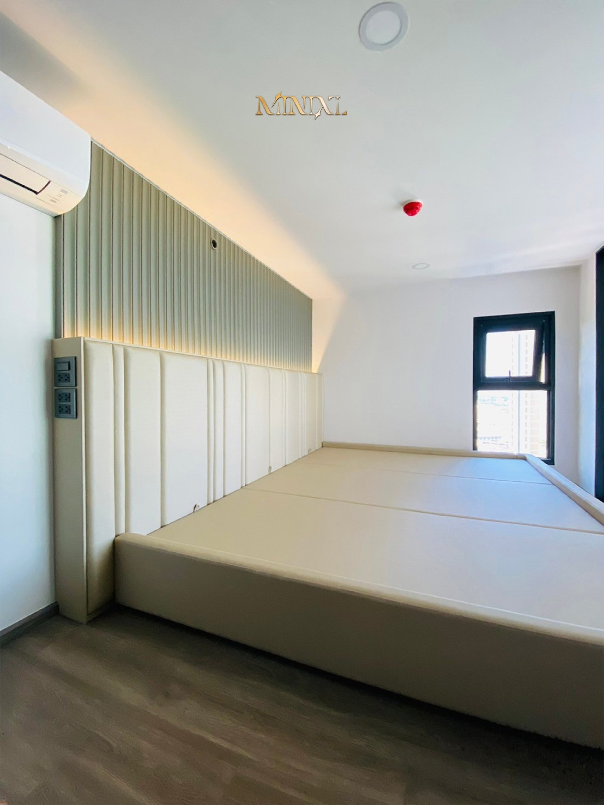 - หัวเตียงสูงดีไซน์เรียบหรู บุร่องแนวตั้ง ให้ความรู้สึกโอ่อ่าแต่ยังคงความมินิมอล