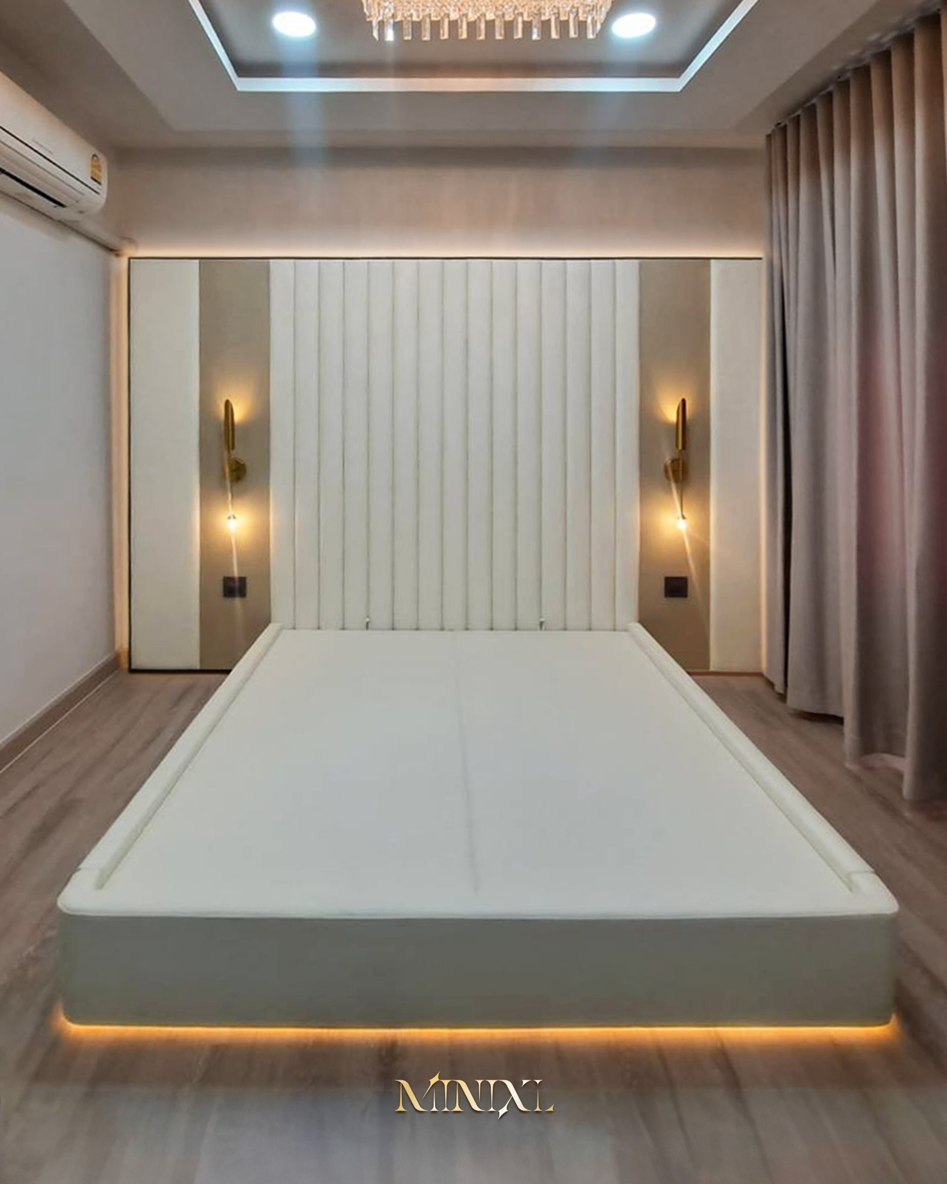 - ซ่อนไฟใต้ฐานเตียง เพื่อให้ดูมีมิติเพิ่มมากขึ้น