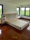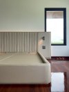 - หัวเตียงดีไซน์ร่องแนวตั้งบุเต็มผนัง เสริมความหรูหราให้กับพื้นที่